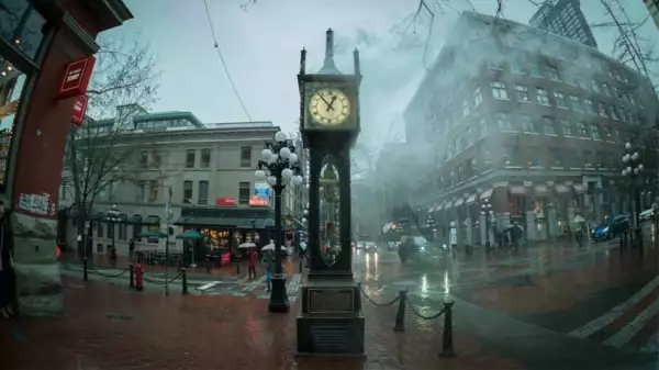 Después de desayunar en el hotel, nos fuimos a visitar el barrio Gastown, famoso por su reloj de vapor, que cada 15 y 60 minutos, lanza columnas de vapor y silba. Nos recuerda el paso del tiempo en dos sentidos: por su marcha y porque fue toda una novedad hace más de un siglo, cuando se integró en este barrio histórico de Vancouver.