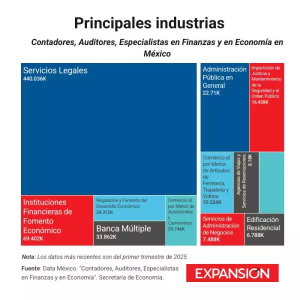 De acuerdo con datos de la Encuesta Nacional de Ocupación y Empleo (ENOE) del Inegi, al primer trimestre de 2025 (la información más reciente reportada), la fuerza laboral estaba compuesta por 541,956 personas empleadas como Contadores, Auditores, Especialistas en Finanzas y en Economía.