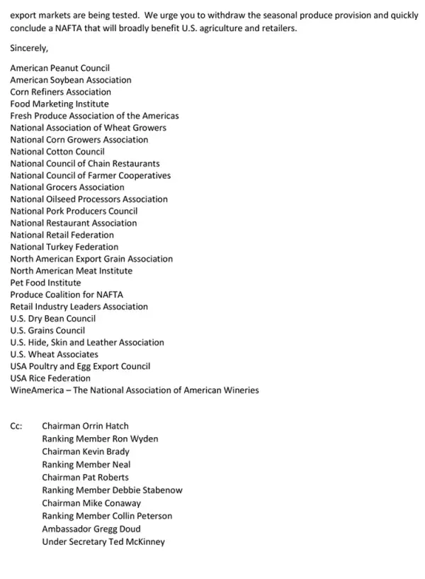 Los representantes del sector agrícola estadounidense aseguran que la propuesta ya fue retirada de la mesa,y nunca se discutió en las rondas, explicó el ejecutivo integrante del grupo del sector privado agrícola dentro del Cuarto de Junto, que asesora a los negociadores mexicanos.