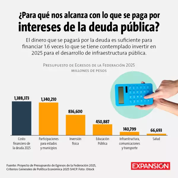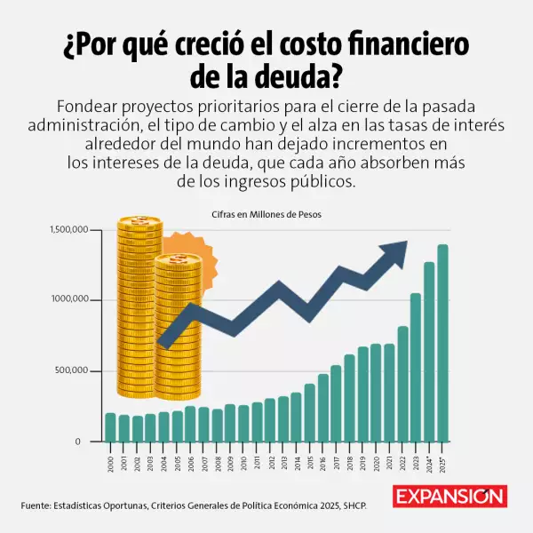 El costo financiero se espera en 3.8% del PIB el siguiente año y el gasto de capital en 2.8%, “entonces vamos a pagar más solo en intereses y servicio de la deuda que todo lo que vamos a invertir en un año, eso resulta relevante”, detalló Clavellina. Año tras año, el costo financiero de la deuda absorbe más parte del presupuesto, apretando el margen para destinar recursos a otros rubros.