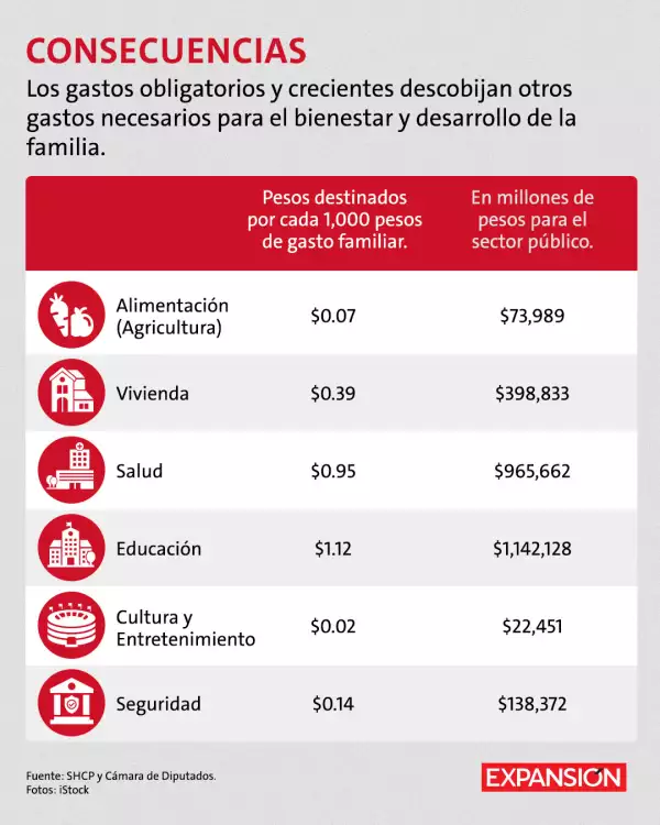 De acuerdo con información de Fundar y estimaciones de Expansión, por cada 1,000 pesos del gasto de esta familia, solo 1.12 pesos se dedicarían a educación, 0.95 a salud, y 0.13 a seguridad.