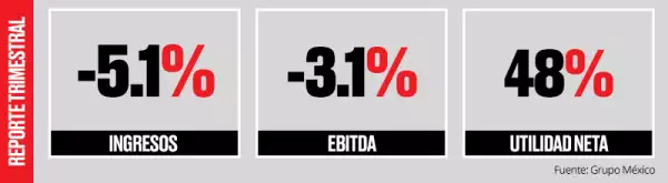 La caída en el precio de los metales como cobre, zinc, molibdeno y plata impactaron en los ingresos del conglomerado Grupo México, que a pesar de esto, obtuvo un alza del 48% en su utilidad neta.