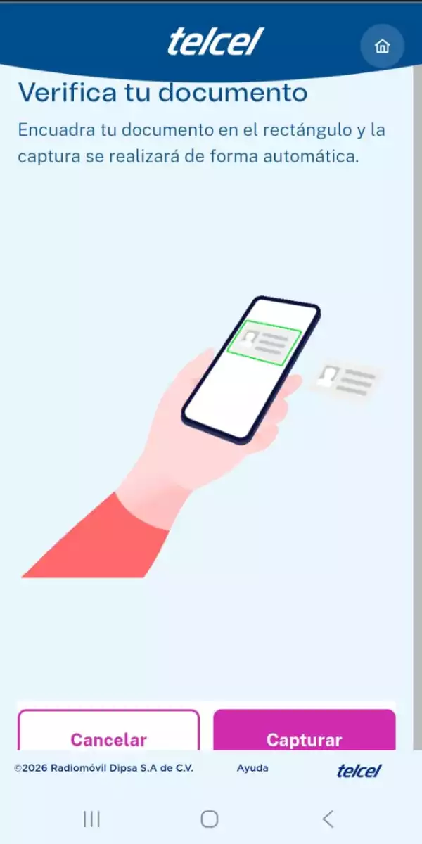 El sitio te pedirá tomar una fotografía del documento que hayas elegido. Sigue las indicaciones para la captura.