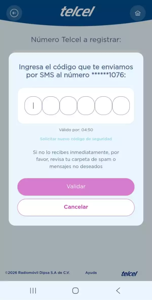 Agrega tu número de teléfono y en poco tiempo, te llegará un correo con un código de verificación dentro del plazo de tiempo que asigna la pantalla.