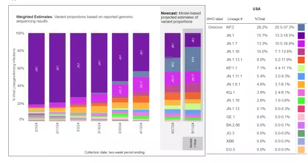 En realidad, la clasificación de la Organización Mundial de la Salud para la cepa actualmente dominante en Estados Unidos es el nombre de KP.2. Y, según los Centros para el Control y Prevención de Enfermedades de Estados Unidos , esta variante está dominando una nueva ola de contagios, con el 28.2% de los casos confirmados.