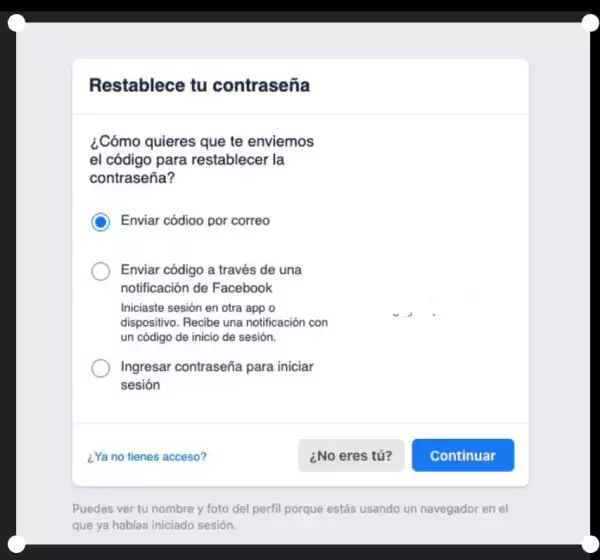 Facebook señala que existen opciones de recuperación de la contraseña y así puedas evitar perder tu cuenta.