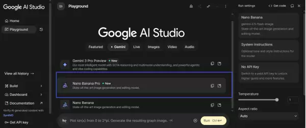 En Google AI Studio, la opción está en el menú principal de la pantalla. Sin embargo, desde el inicio, la herramienta señala que solo está disponible para los usuarios de pago. En caso de no tener suscripción, se invita a agregar una clave API para acceder a las funciones avanzadas.