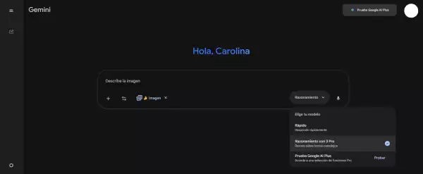 En Gemini, se requiere abrir una nueva conversación y seleccionar la función de ‘Imágenes’ del botón de Herramientas, y posteriormente dar clic en ‘Razonamiento con 3 Pro’. En una prueba realizada, la IA realizó cuatro resultados a creación de imágenes hasta señalar que se acabaron las respuestas de libre acceso. Para continuar, debía tener la versión de paga.