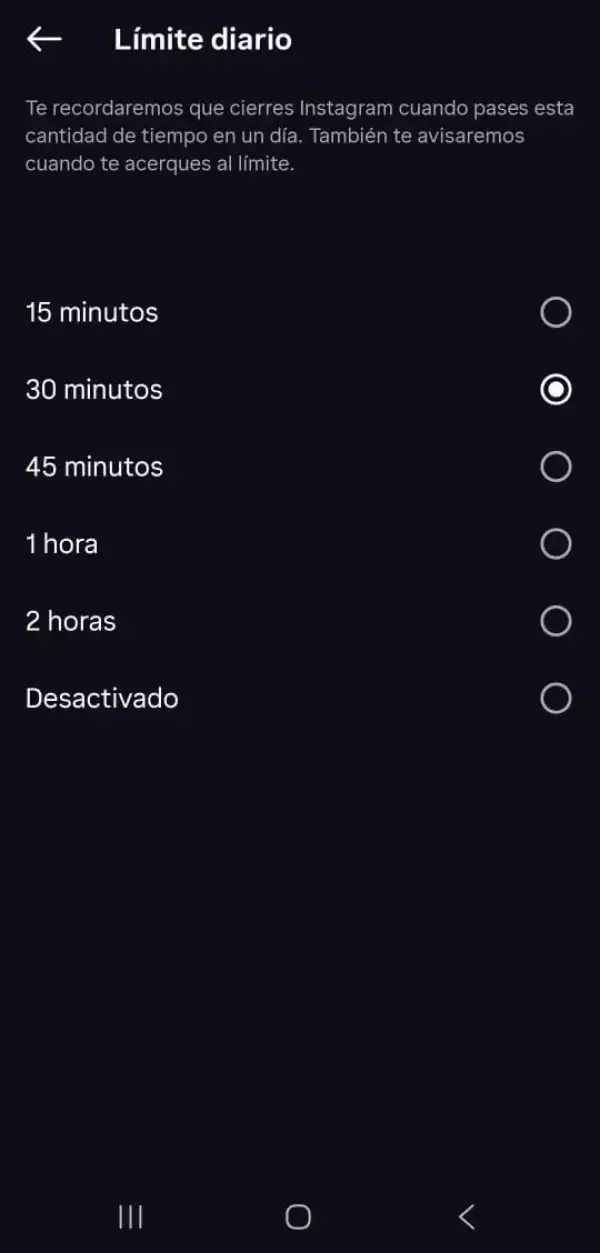 La aplicación de Meta para fotos y videos cortos ofrece límites más cortos en su uso diario, con 15 minutos el tiempo mínimo, pero sin opciones de personalización.