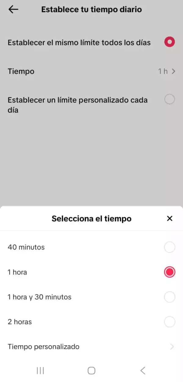 Tiempo en pantalla diario: Recordatorios de límites de uso diario que van de