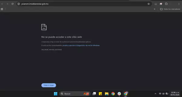 En una consulta durante este viernes realizada por Expansión, el Poanom muestra el anuncio directo de “No se puede acceder a este sitio web”.